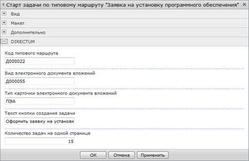 Веб-часть предназначена для просмотра, создания и старта задачи по типовому маршруту в веб-части.