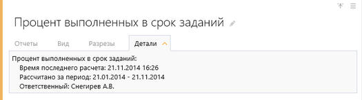 Время последнего расчета. Дата и время последнего расчета значения показателя. Подробнее см. раздел «Расчет значений показателей».