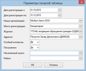 Отчет формируется на основе утвержденных записей представлений справочника Обращения граждан и организаций.