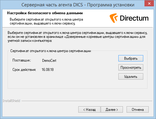 Чтобы организовать безопасный обмен данными между контроллерами и агентами DICS, создайте и настройте сертификаты. Затем установите серверную часть агента: