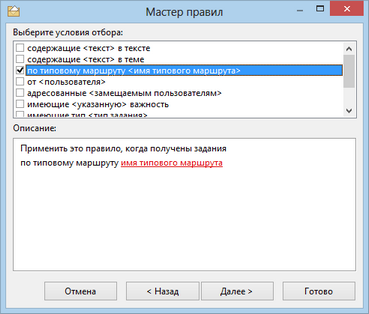 Чтобы настроить правило, перемещающее в отдельную папку задания, например, созданные по типовому маршруту «Согласование договорных документов»: