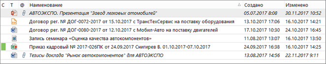 Документы в системе могут иметь разный вид в зависимости от стадии жизненного цикла. Это позволяет быстро определить, в каком состоянии находится документ, например, на согласовании, на исполнении или работы по нему завершены. Внешний вид документов с определенной стадией жизненного цикла задает администратор системы. |