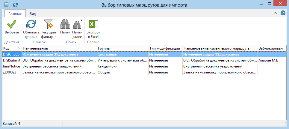 Если в системе нет типового маршрута с кодом, указанным в XML-файле, то в поле Тип модификации для импортируемого маршрута будет указано значение Добавление. Если есть, будет указано значение Изменение.
