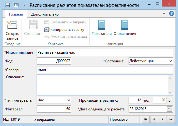 Справочник предназначен для создания и хранения расписаний расчетов. С каждой записью могут быть связаны один или несколько показателей и оповещений. Справочник, как правило, заполняется разработчиками или администраторами системы.