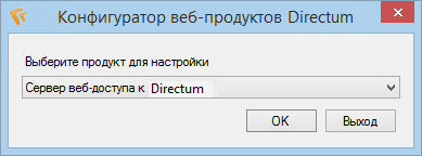 Если на сервере существует больше одного узла для веб-доступа или установлены другие веб-продукты, например, сервер NOMAD или сервис предпросмотра документов, то при запуске конфигуратора открывается окно выбора: