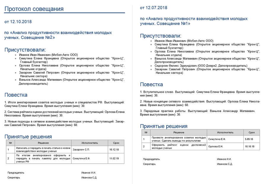 | 3. | Зафиксируйте решения, принятые на совещании, в протоколе и отправьте его на согласование. |