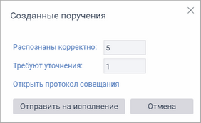 Укажите недостающие данные вручную. Закройте справочник. Количество распознанных и требующих уточнения поручений обновится автоматически.